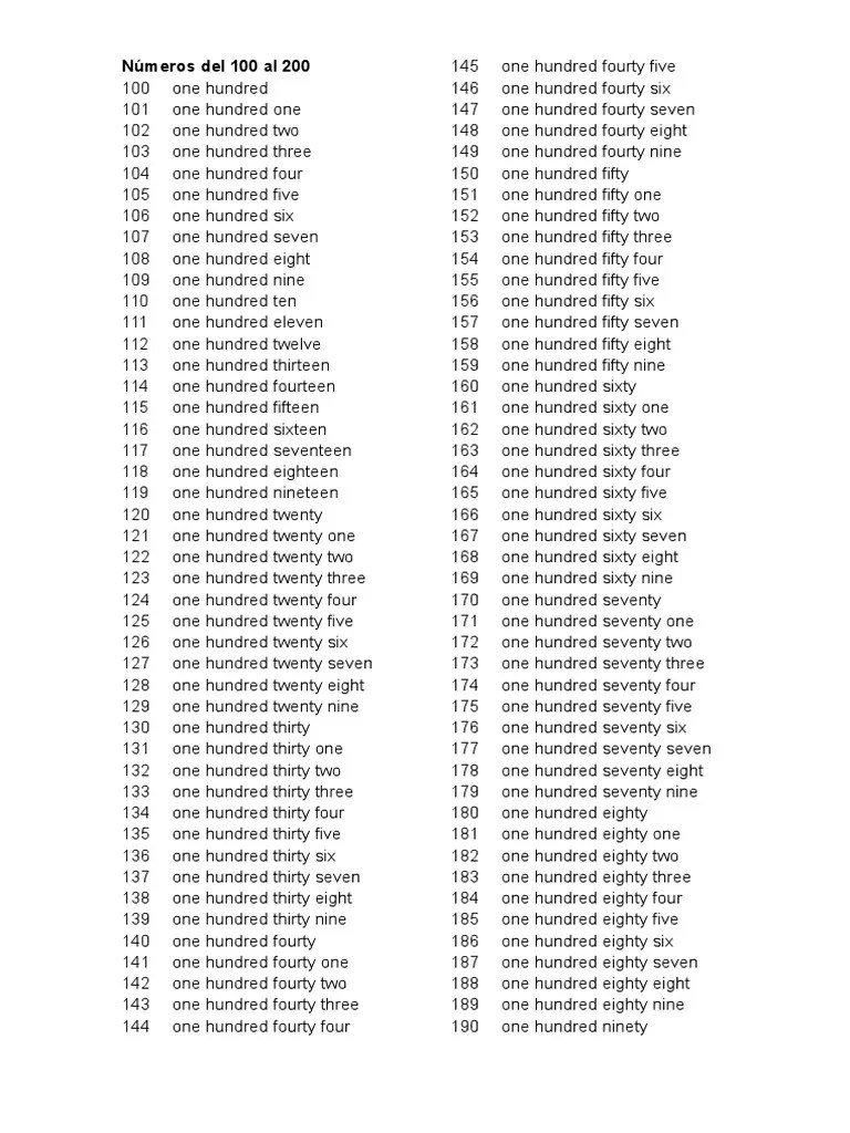Los números del 100 al 200 en inglés numeros en ingles 100 al 200. ¿seguimos y aprendemos los números del 1 al 1000 en inglés?